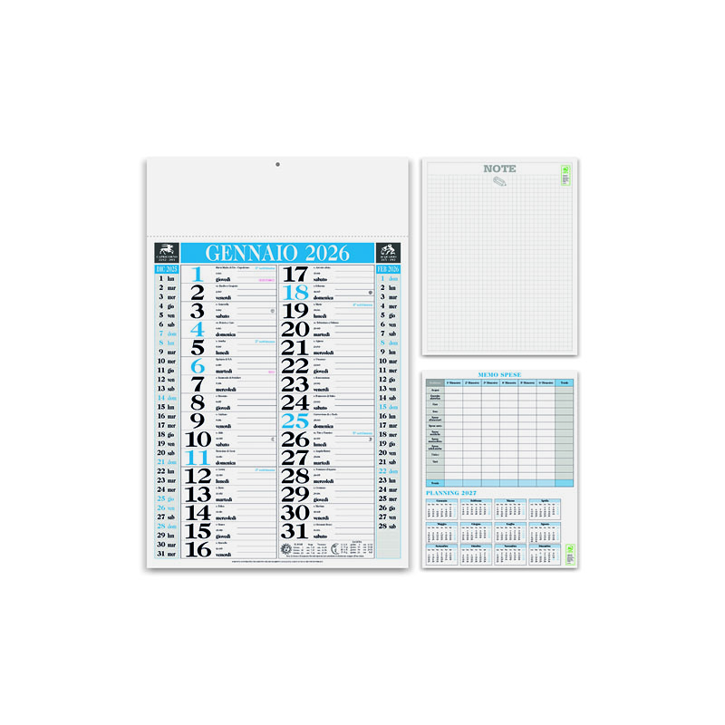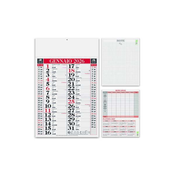 Calendario olandese mensile 12 fogli, carta patinata 70 gr, testata termosaldata, certificazione PEFC.