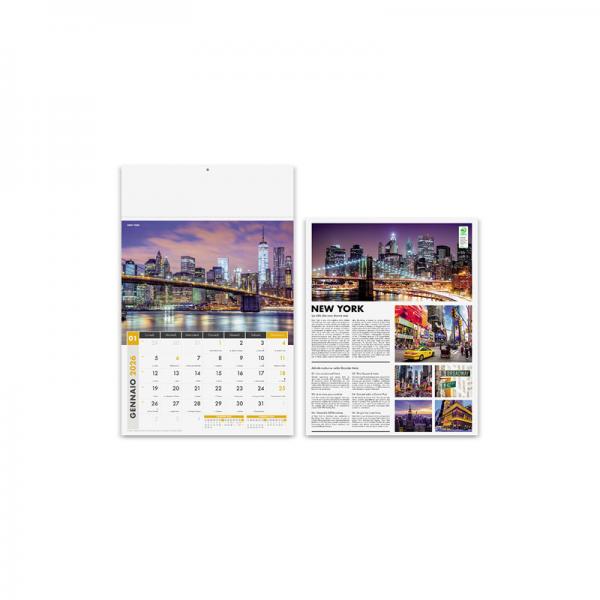 Calendario illustrato 12 fogli, carta patinata 70 gr, testata termosaldata.