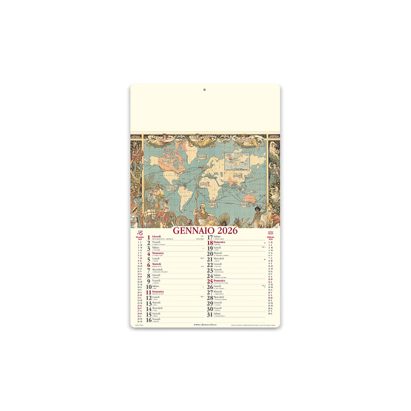 Calendario illustrato mensile 12 fogli, carta patinata 70 gr, testata rinforzata