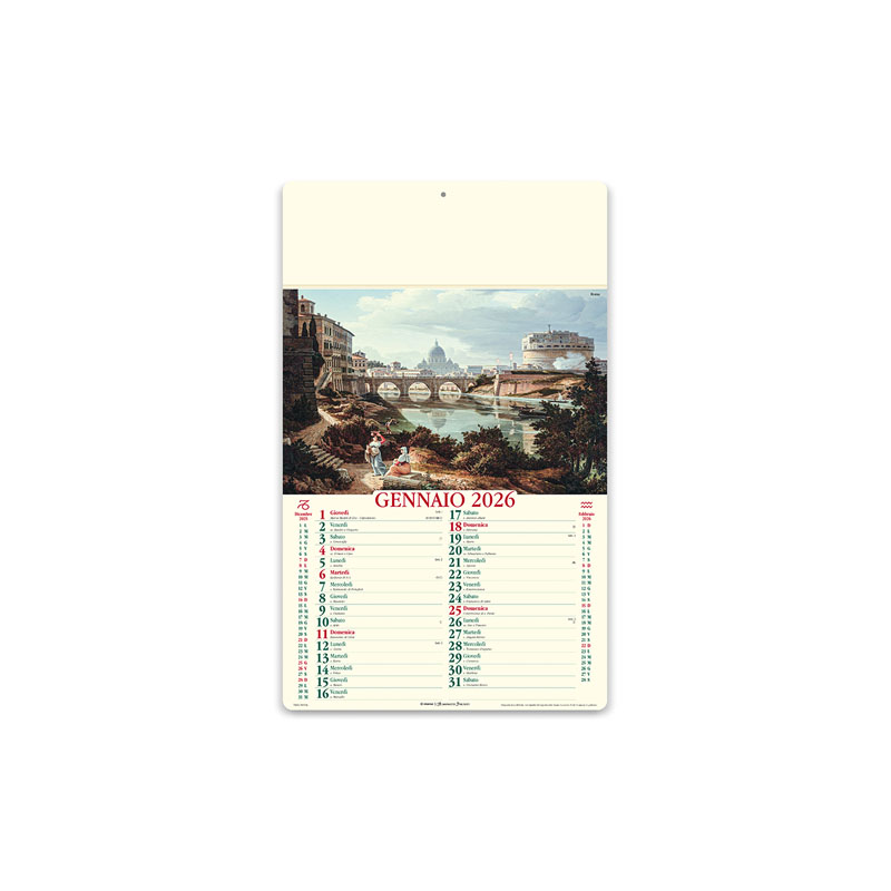Calendario illustrato mensile 12 fogli, carta patinata 70 gr, testata rinforzata
