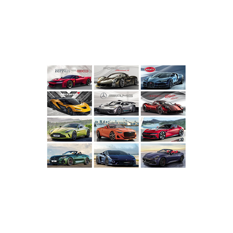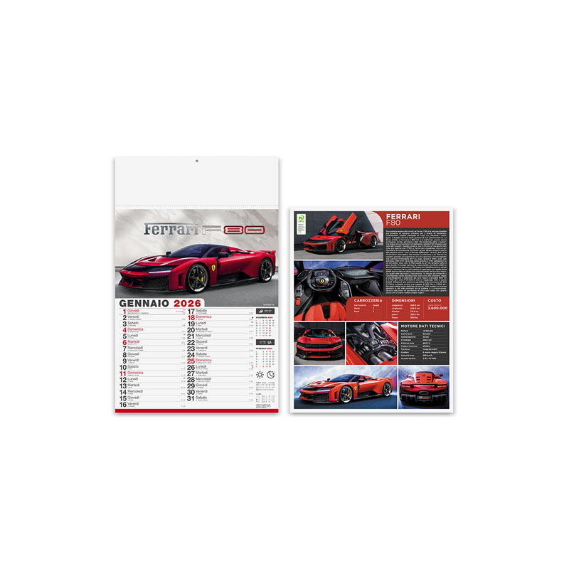 Calendario illustrato 12 fogli, carta patinata 70 gr, testata termosaldata, certificazione PEFC