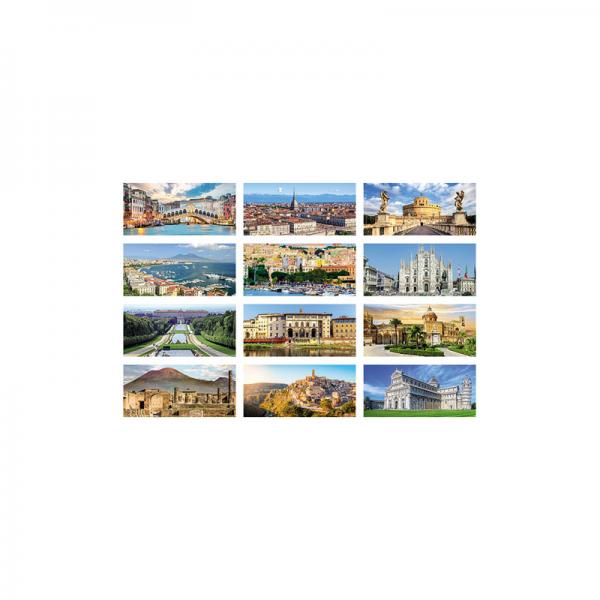 Calendario spiralato da tavolo illustrato 13 fogli, carta patinata 90 gr, supporto in cartoncino bianco 450 gr.