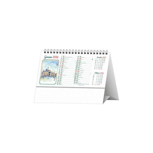 Calendario da Tavolo. Carta patinata opaca 100gr, trimestrale 13 fogli.