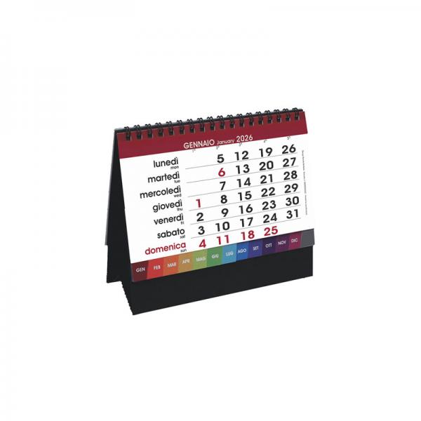 Calendario “Desk”. Mensile 13 fogli fustellati. Cartoncino nero. Carta patinata.