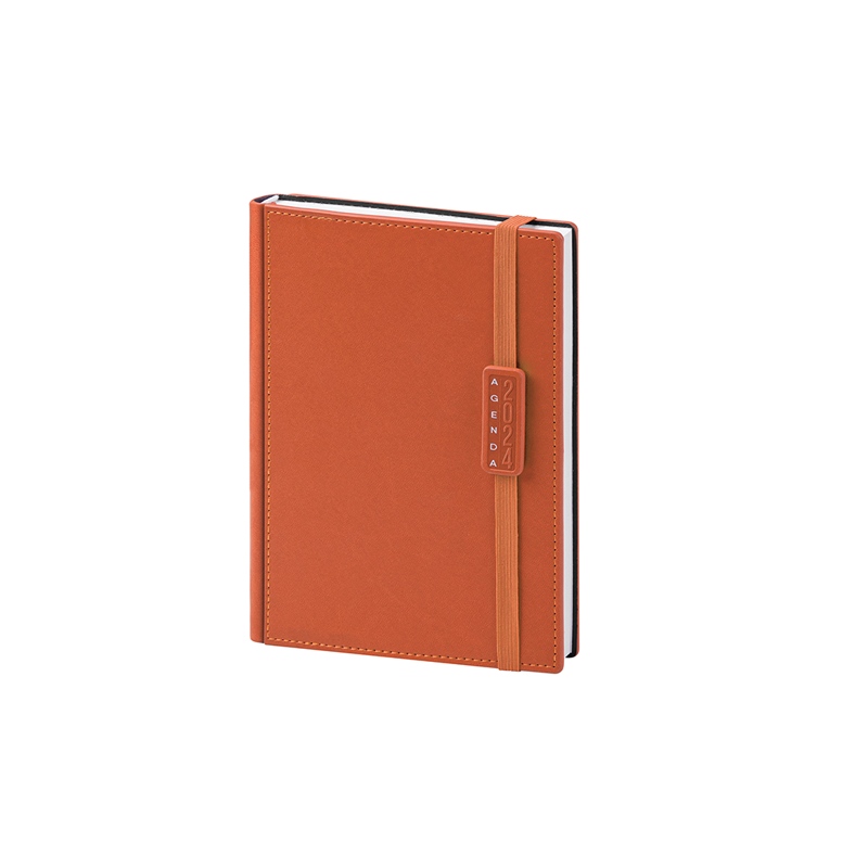 Agenda da 324 pagine con sabato e domenica abbinati, carta bianca con stampa a 2 colori. Edizione multilingua: italiano, inglese, francese, tedesco, spagnolo e portoghese. Inserti informativi e rubrica telefonica, quadranti imbottiti con angoli tondi, inserto cartografico, segnapagine, corredato di astuccio.