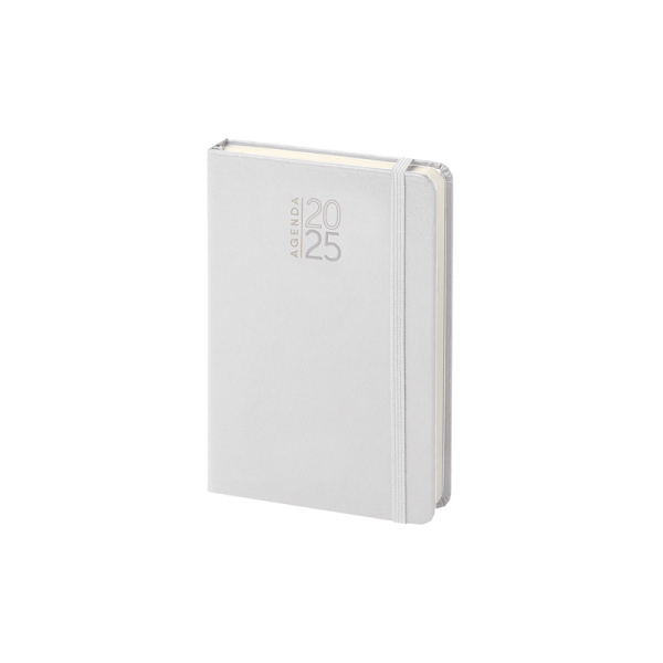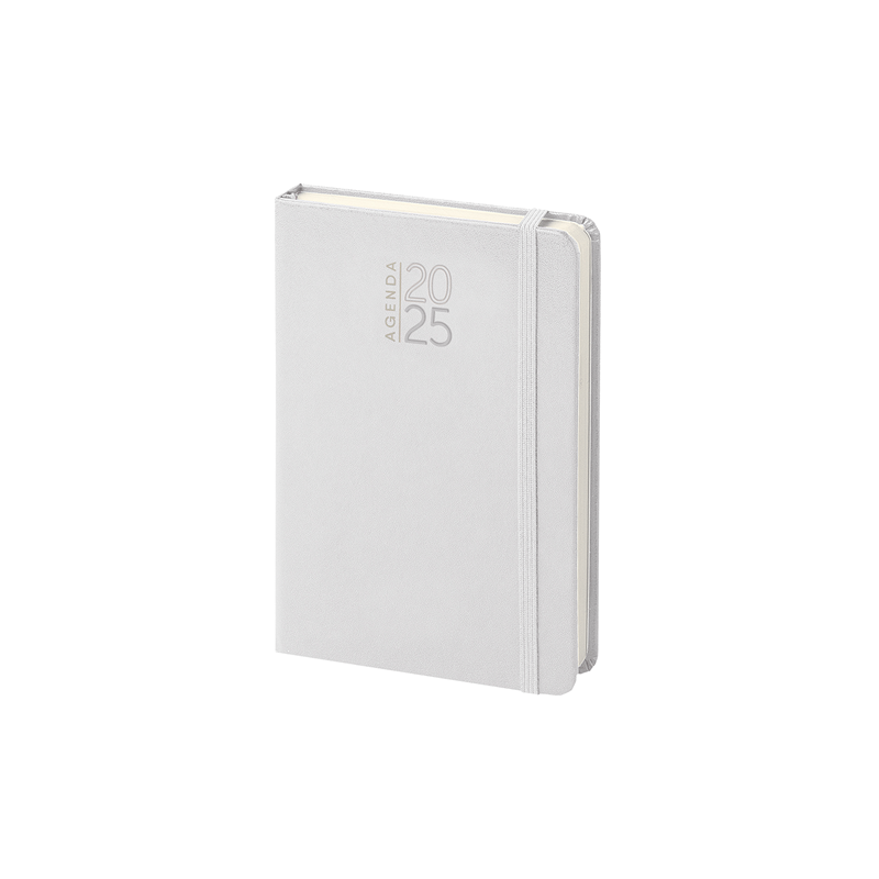 Agenda settimanale 192 pagine (128 pag. agenda, 12 pag. turnario del lavoratore, 20 pag. per note, 16 pag. con perforatura verticale removibile, 16 pag. talloncini removibili con doppia perforatura), carta avorio, stampa a 1 colore, edizione multilibgue, inserti informativi, tasca posteriore interna p/card, quadranti con angoli tondi, segnapagine, chiusura con elastico.