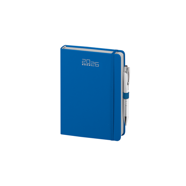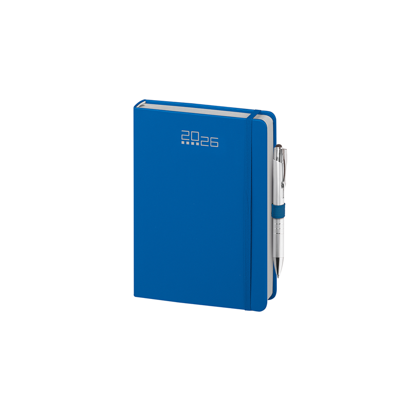 Inserti informativi e rubrica telefonica, segnapagine, chiusura con elastico, portapenne, corredata di astuccio.