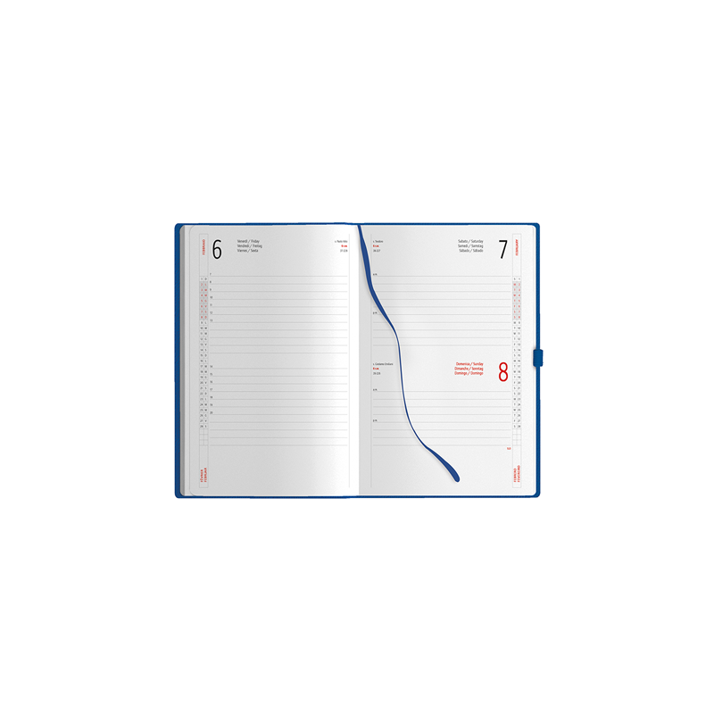 Agenda da 324 pagine con sabato e domenica abbinati, carta bianca con stampa a 2 colori.