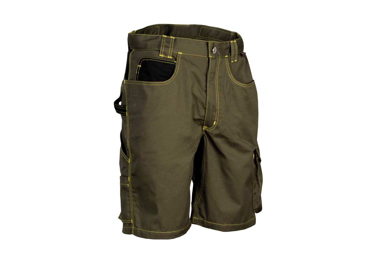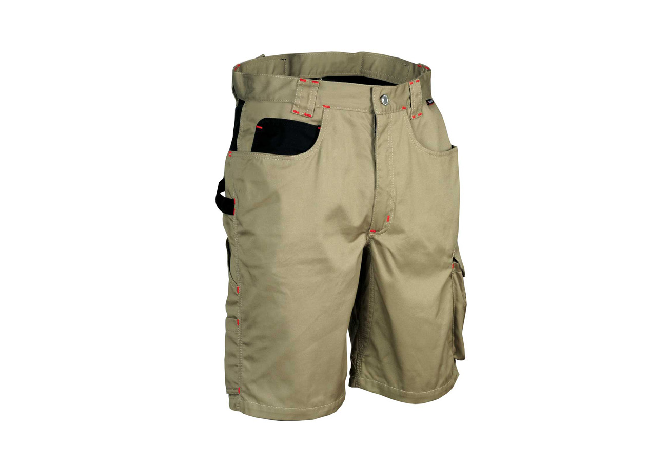 Ampie tasche anteriori, doppia tasca posteriore di cui una con pattina, inserto portapenne, passante portamartello, tasca laterale, tasca porta monete, tasca portametro, vita regolabile, zip YKK