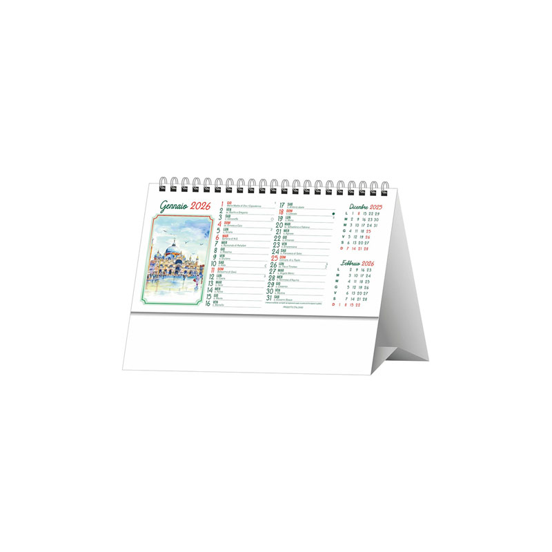 Calendario da Tavolo. Carta patinata opaca 100gr, trimestrale 13 fogli.