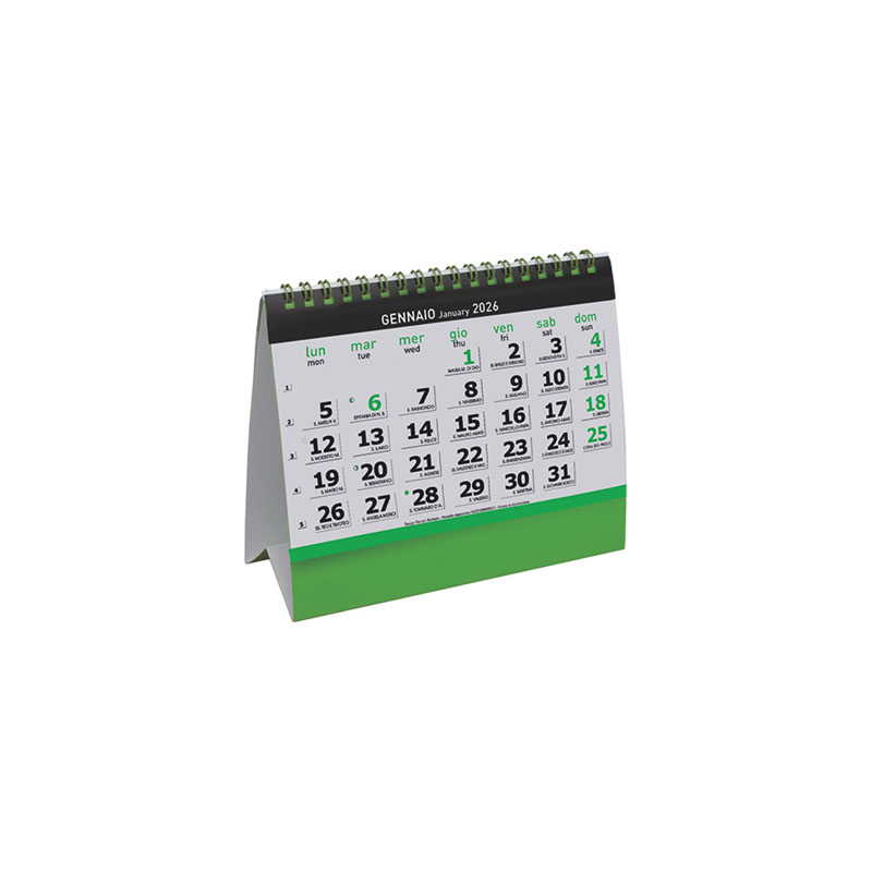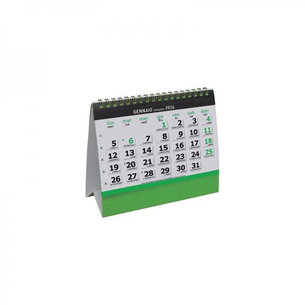 Calendario “Essential Desk”. Mensile 12 fogli cartoncino bianco: rosso, giallo, verde, blu, arancio. Carta uso mano.