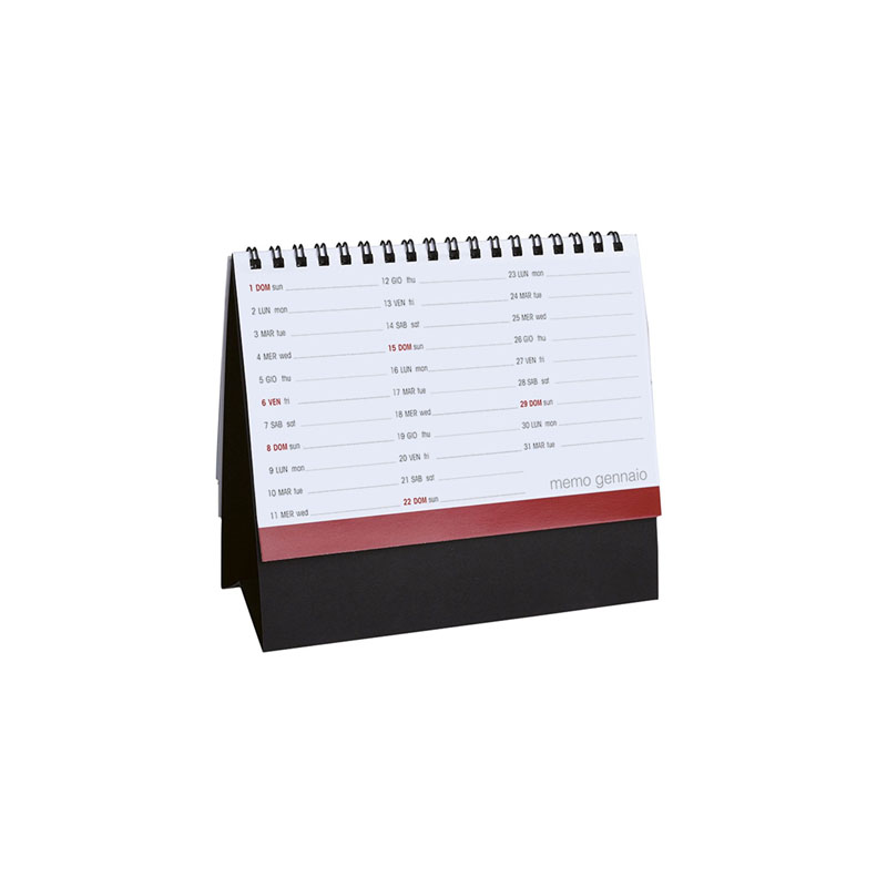 Calendario “Desk”. Mensile 13 fogli fustellati. Cartoncino nero. Carta patinata.