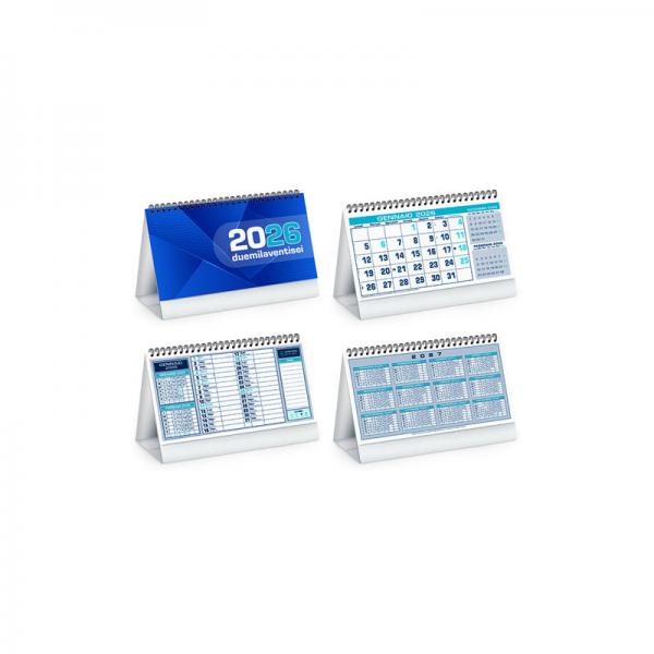 Calendario spiralato da tavolo mensile 13 fogli, carta bianca 90 gr, supporto cartoncino bianco 450 gr.