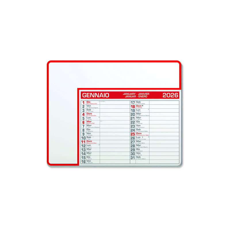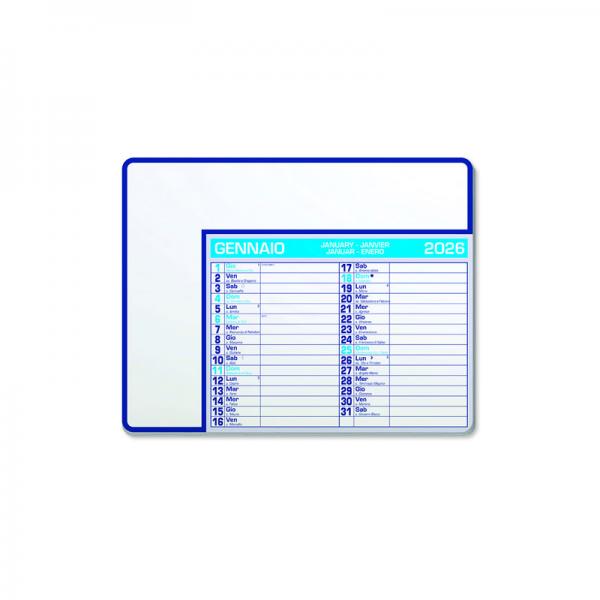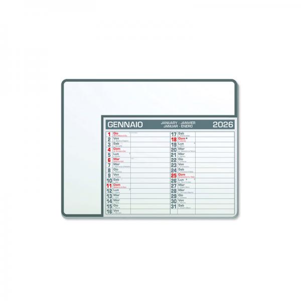 Tappetino mouse calendario 12 mesi con note, copertina rigida in pvc, base in eva, materiale: carta, pvc, eva.