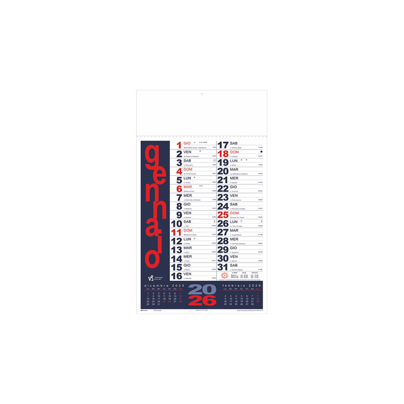 Calendario olandese trimestrale 12 fogli, carta patinata