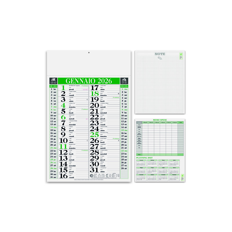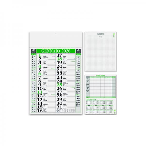 Calendario olandese mensile 12 fogli, carta patinata 70 gr, testata termosaldata, certificazione PEFC.