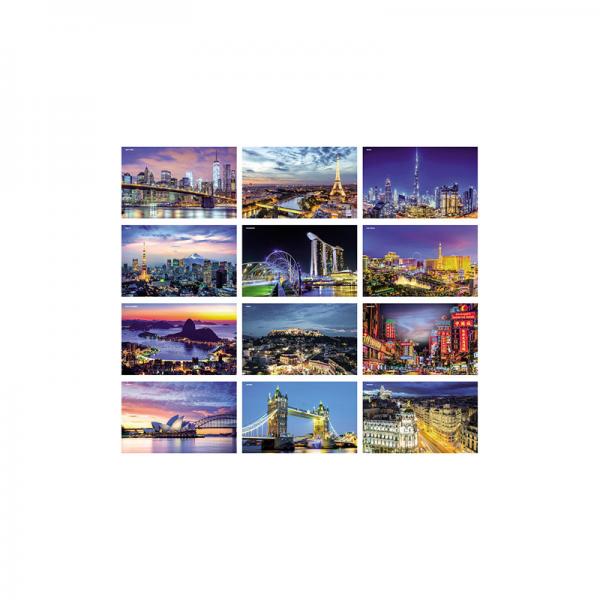 Calendario illustrato 12 fogli, carta patinata 70 gr, testata termosaldata.