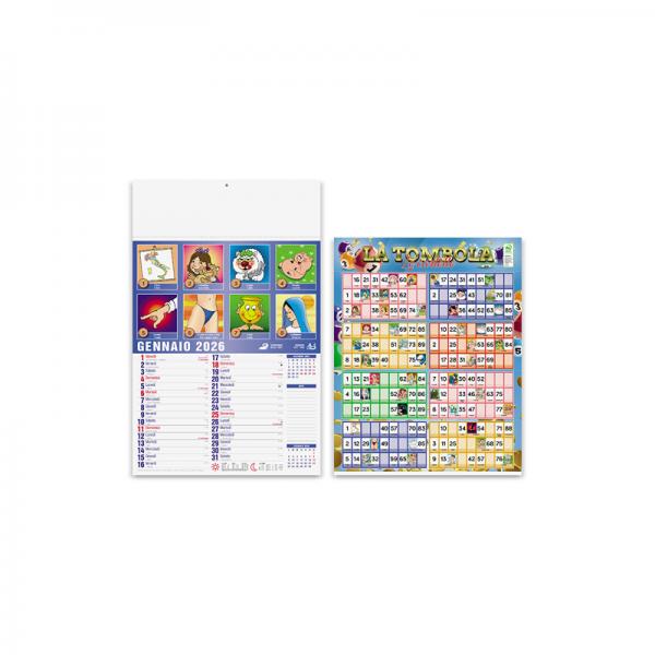 Calendario illustrato mensile 12 fogli, carta patinata 70 gr, testata termosaldata, certificazione PEFC.