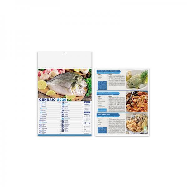 Calendario illustrato 12 fogli, carta patinata 70 gr, testata termosaldata, certificazione PEFC