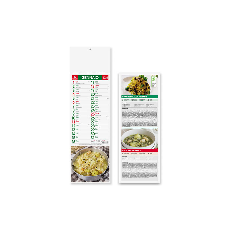 Calendario silhouette mensile 12 fogli, carta patinata 70 gr, testata termosaldata, certificazione PEFC.