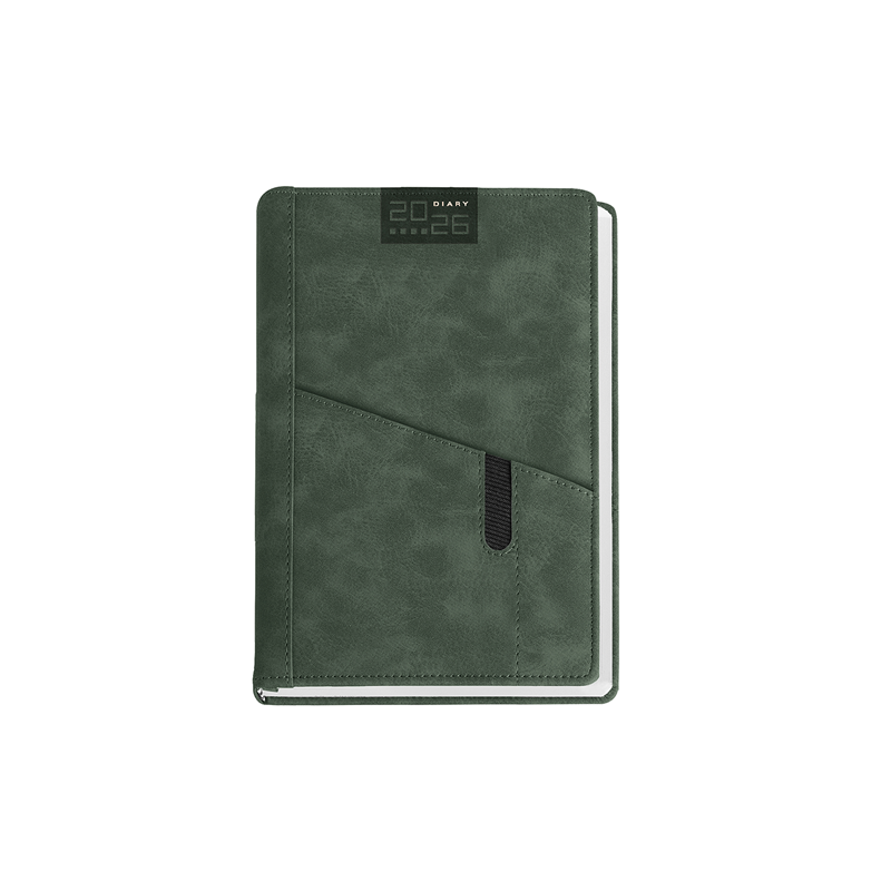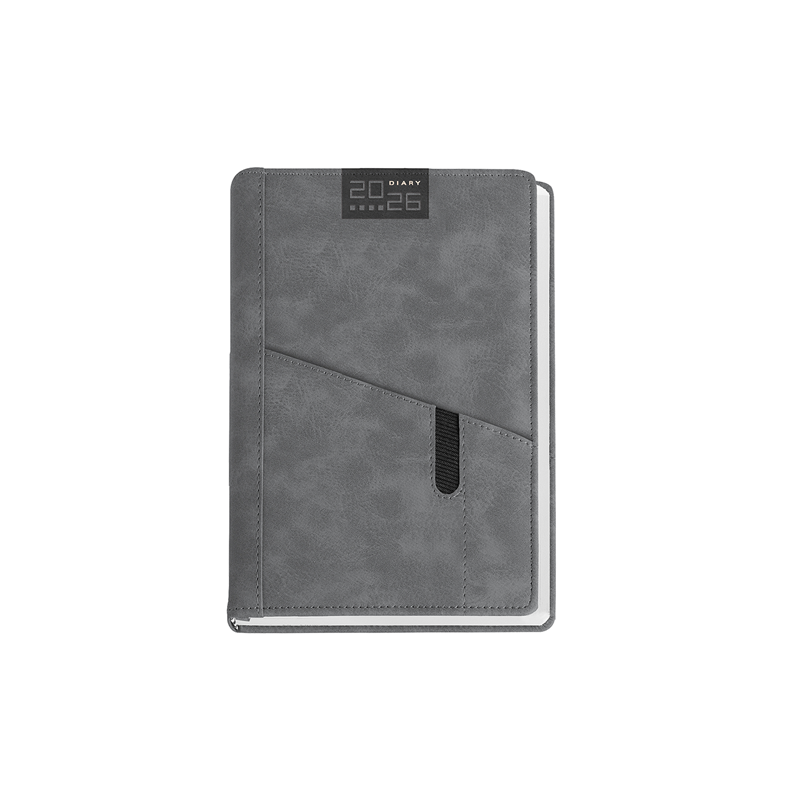 Agenda giornaliera 324 pagine con sabato e domenica abbinati, edizione multilingue: IT-GB-FR-DE-ES-PT, inserti informativi e rubrica telefonica, quadranti imbottiti, angoli tondi, inserto cartografico, segnapagine, chiusura con magnete, corredata di astuccio, tasca anteriore.