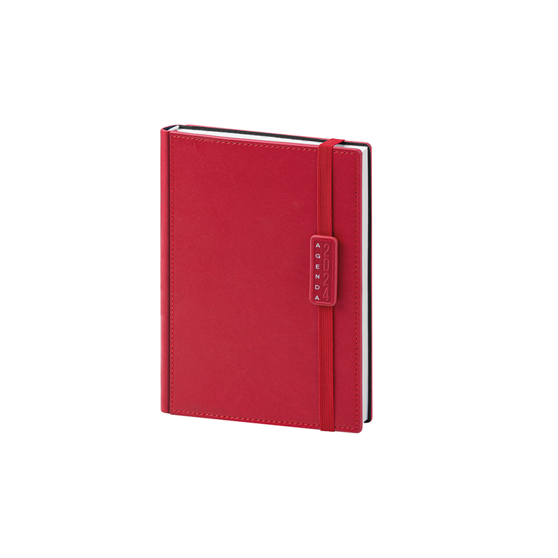 Agenda da 324 pagine con sabato e domenica abbinati, carta bianca con stampa a 2 colori. Edizione multilingua: italiano, inglese, francese, tedesco, spagnolo e portoghese. Inserti informativi e rubrica telefonica, quadranti imbottiti con angoli tondi, inserto cartografico, segnapagine, corredato di astuccio.