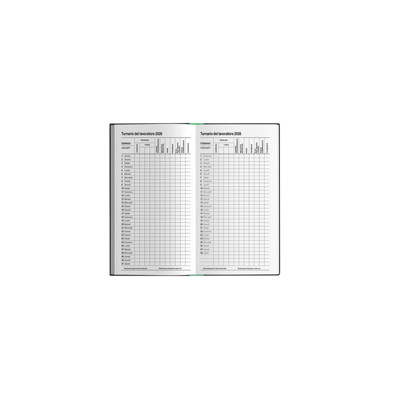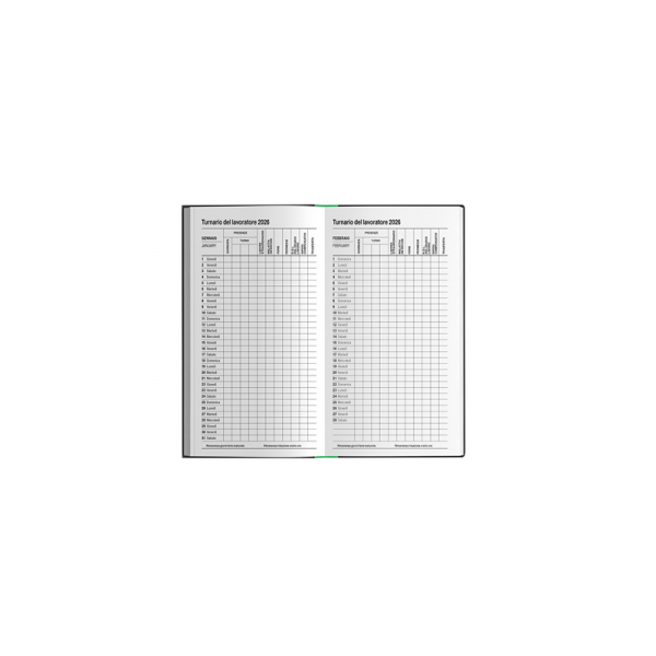 Agenda tascabile settimanale con 136 pagine, edizione multilingue (italiano, inglese, francese, tedesco, spagnolo, portoghese), inserti infomativi e rubrica telefonica, inserto cartografico, turnario 2025