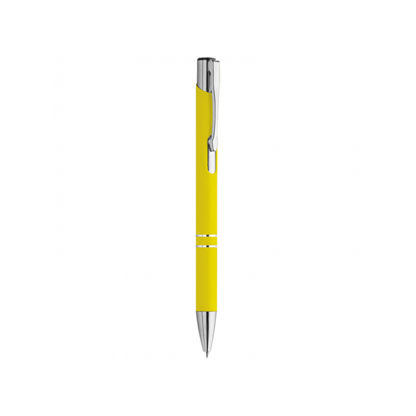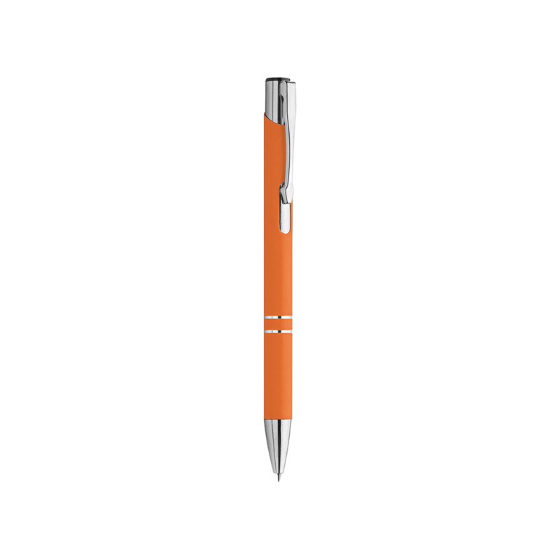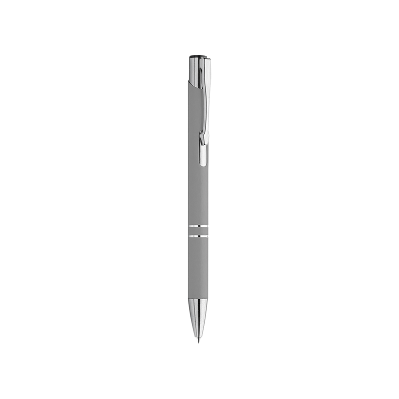 Penna a sfera in metallo, fusto in materiale soft touch, minuterie cromate, refill nero