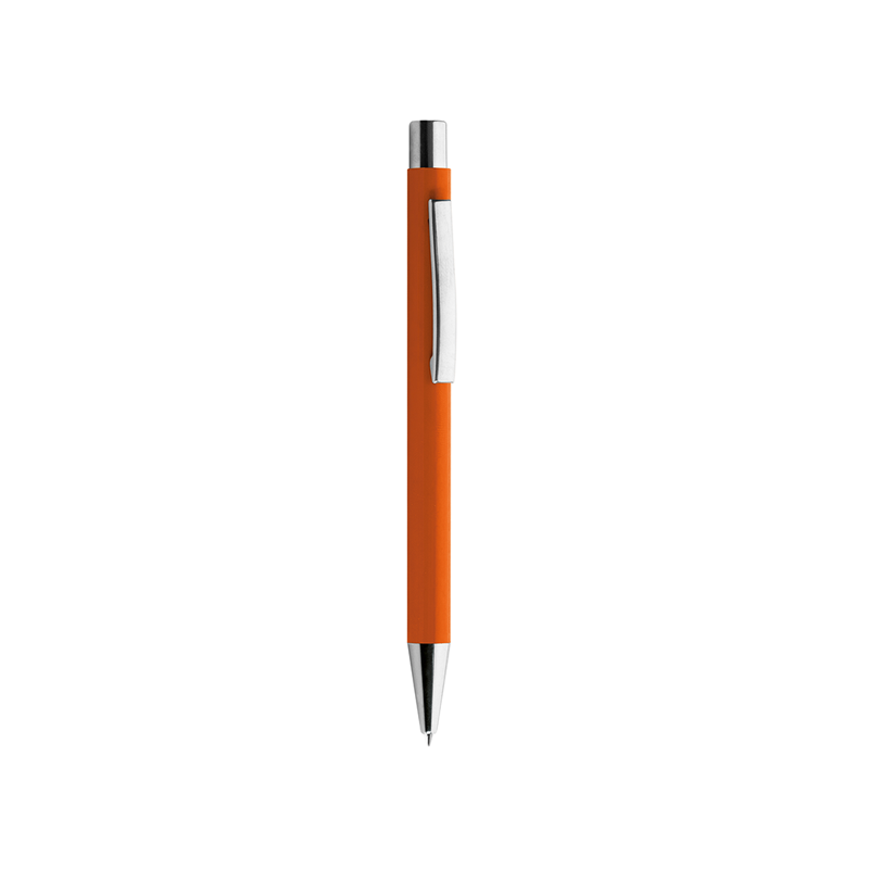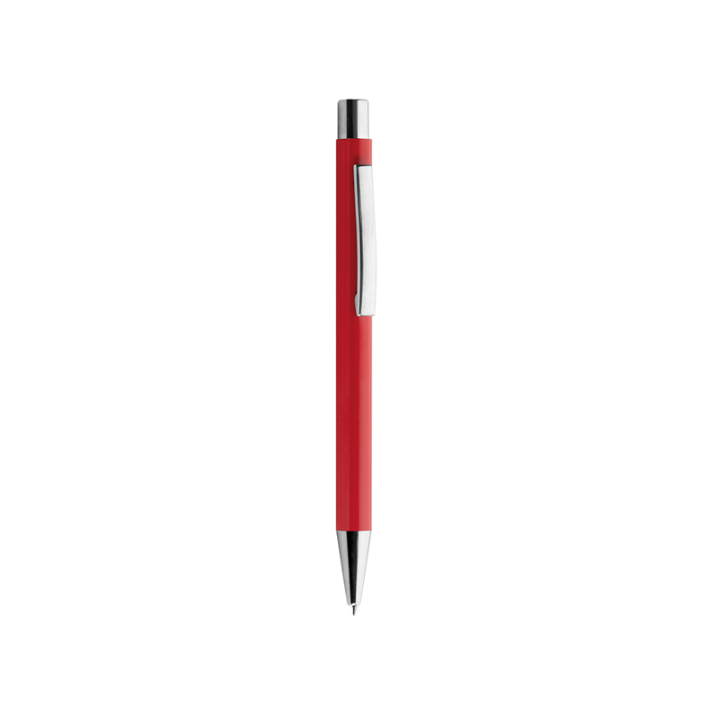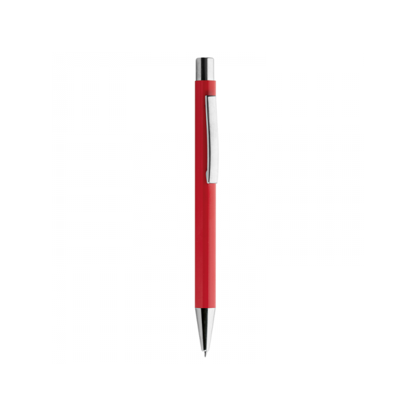 Penna in metallo, refill nero, fusto laccato lucido, minuterie in metallo cromato.