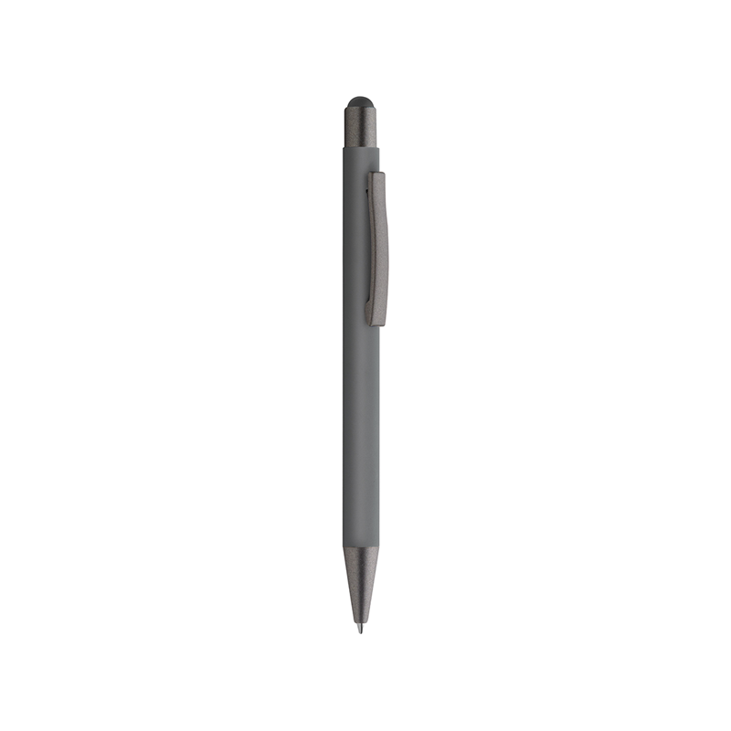 Penna a sfera in metallo, refill nero, fusto matte satinato, finiture in metallo grigio, gomminio touch