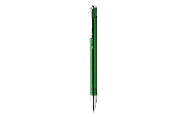 Penna a sfera in alluminio, meccanismo a scatto, refill jumbo nero, texture effetto diamante