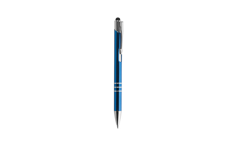 Penna a sfera in metallo, gommino touch, refill nero, meccanismo a scatto