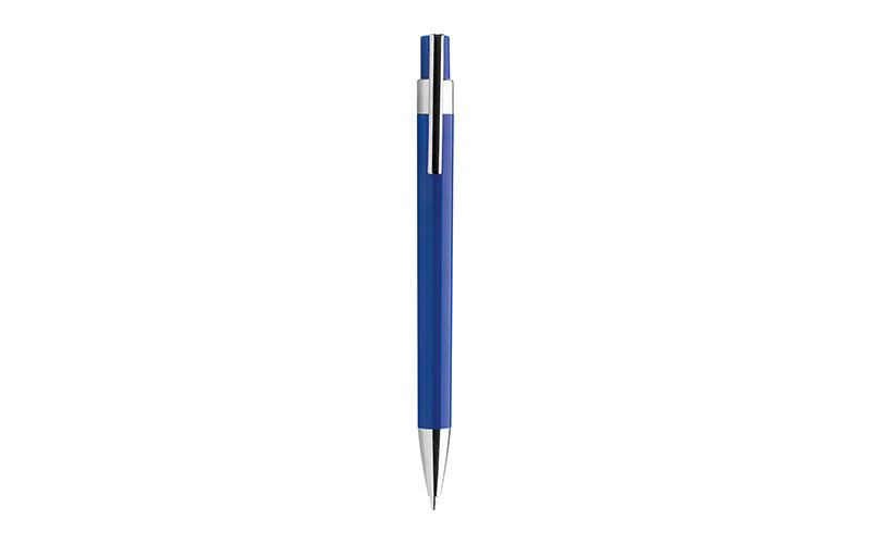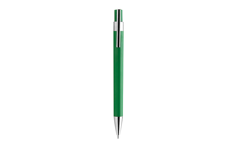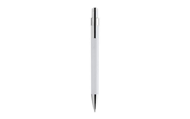 Penna a sfera in plastica, meccanismo a scatto, refill jumbo nero, minuteria in metallo cromato