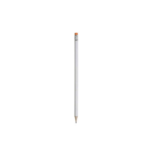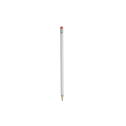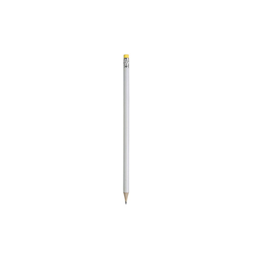 Matita bianca in legno con mina in grafite, a sezione cilindrica, con gommino colorato