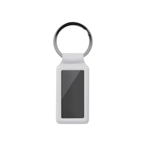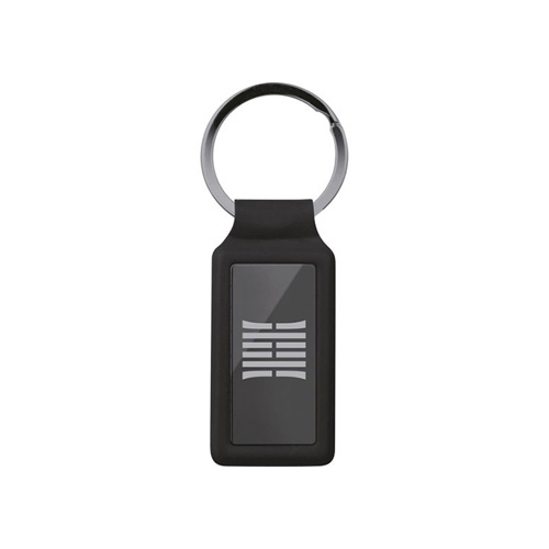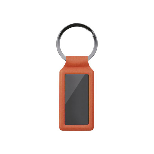Portachiavi con anello brunito, parte frontale con placca in acciaio brunito, confezionati con astuccio