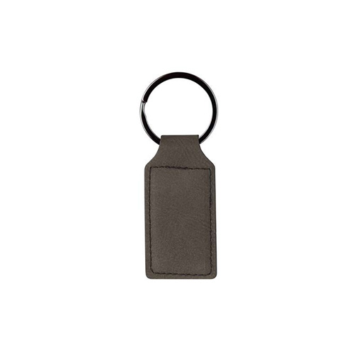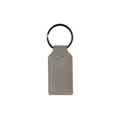 Portachiavi con anello in metallo brunito, in PU con elegante effetto scamosciato adatto ad incisioni laser di colore scuro, con astuccio in confezione singola.