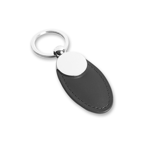 Portachiavi in ecopelle e metallo, cuciture in tinta, anello piatto, astuccio