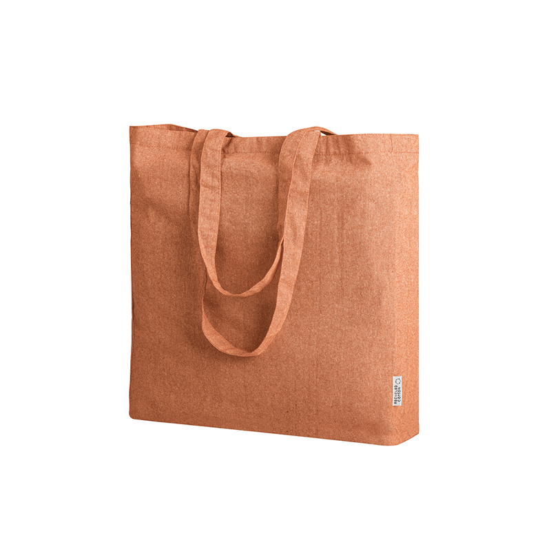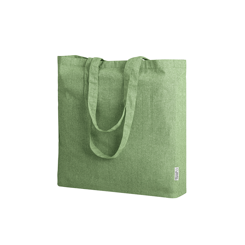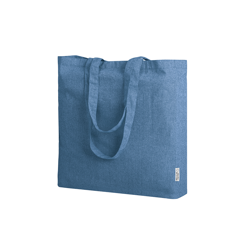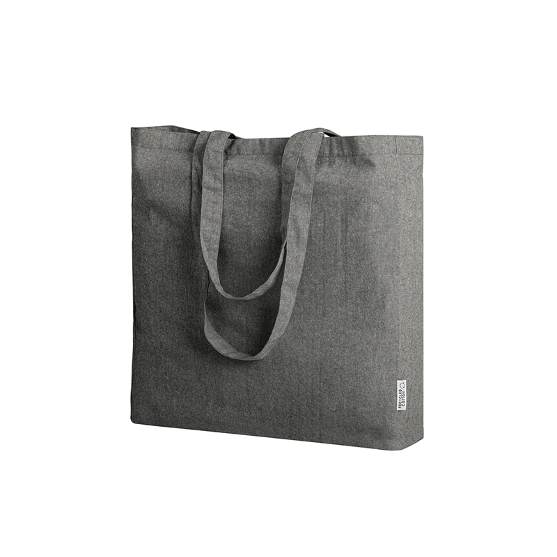 Shopper in cotone riciclato con soffietto, manici lunghi, 150 gr.