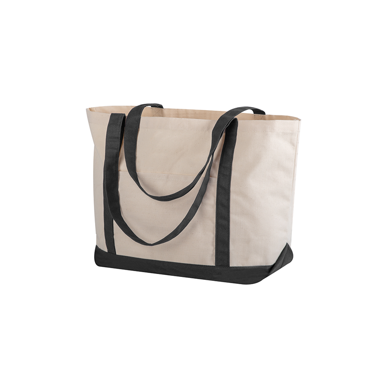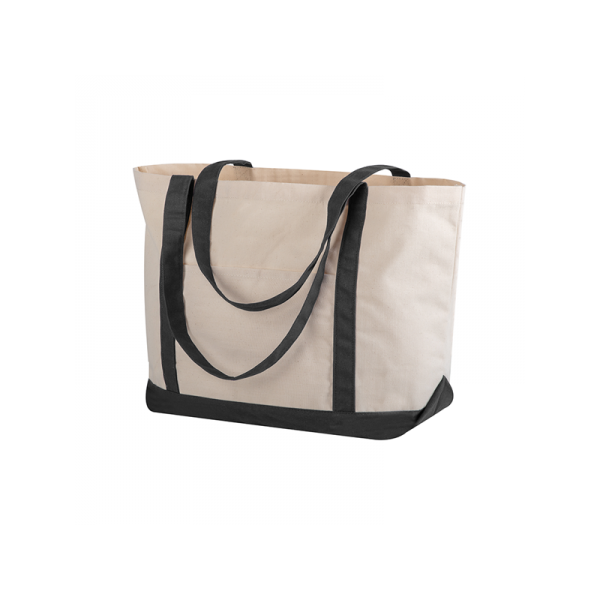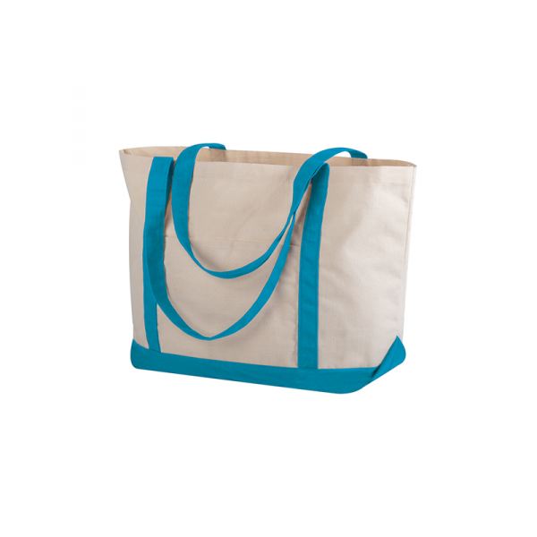 Shopper in cotone canvas, manici lunghi colorati, soffietto, 280 gr