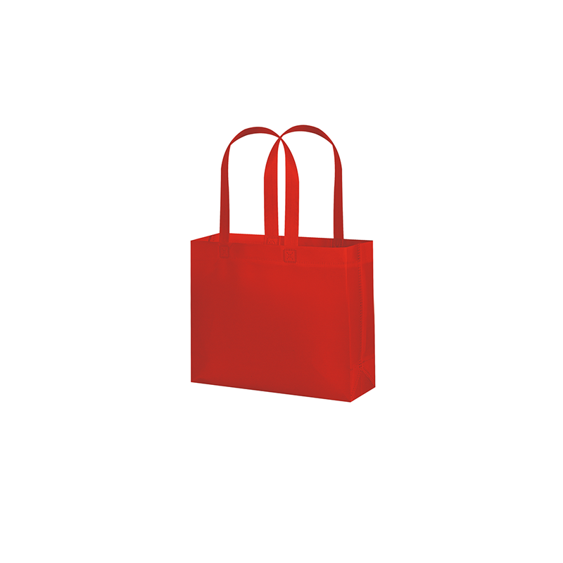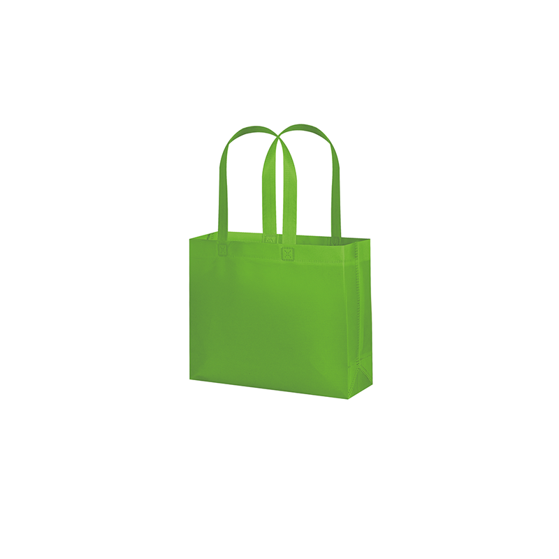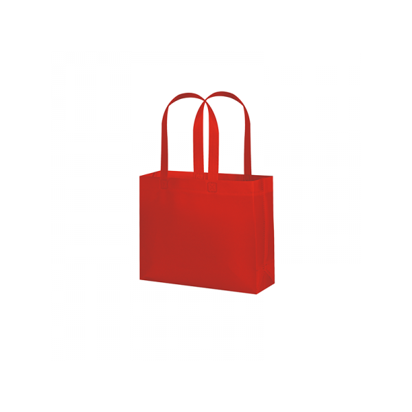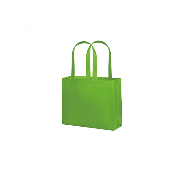 Borsa shopping in tnt laminato, manici lunghi, soffietto, rifiniture termosaldate
