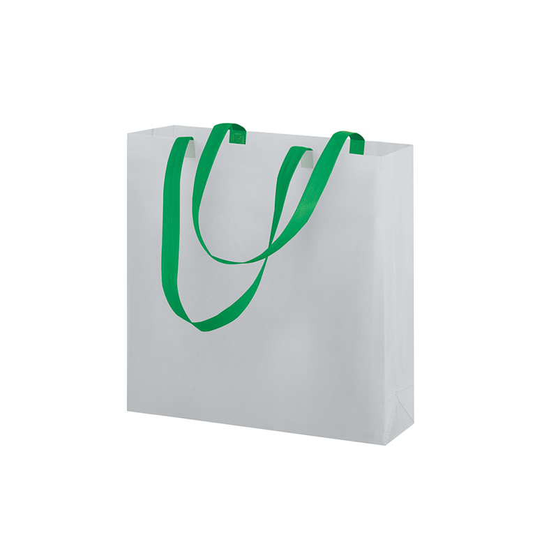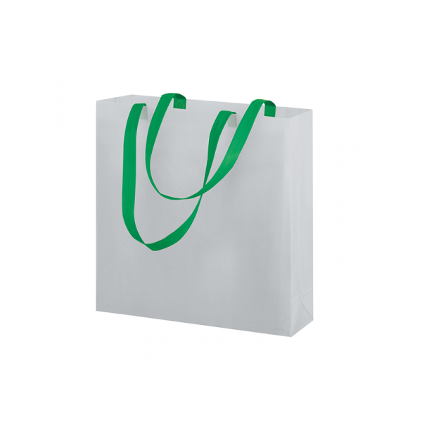 borsa shopping TNT, soffietto, manici lunghi, rifiniture termosaldate.