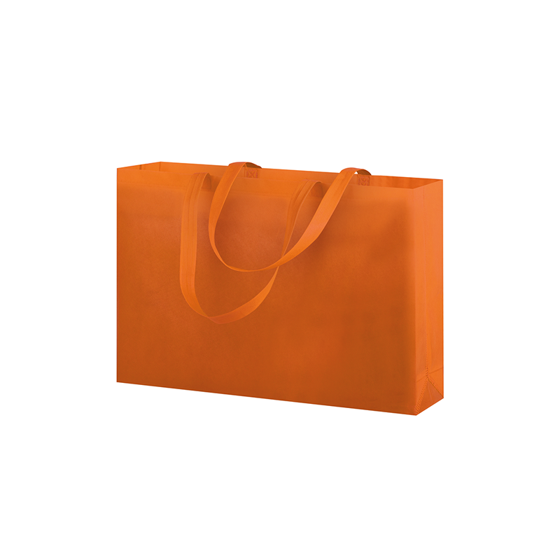 Shopper in TNT, manici lunghi, rifiniture termosaldate.