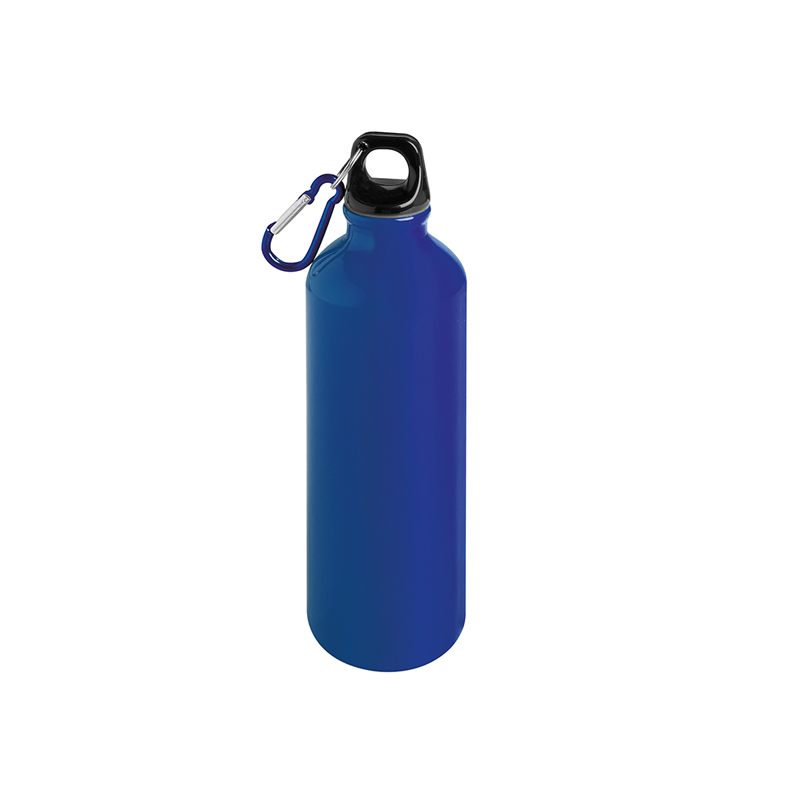 Borraccia di alluminio, tappo di sicurezza avvitabile, moschettone in metallo