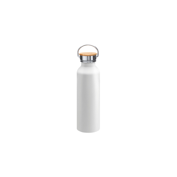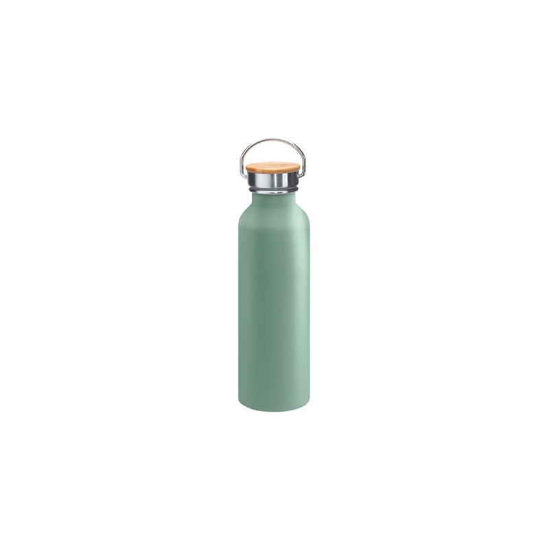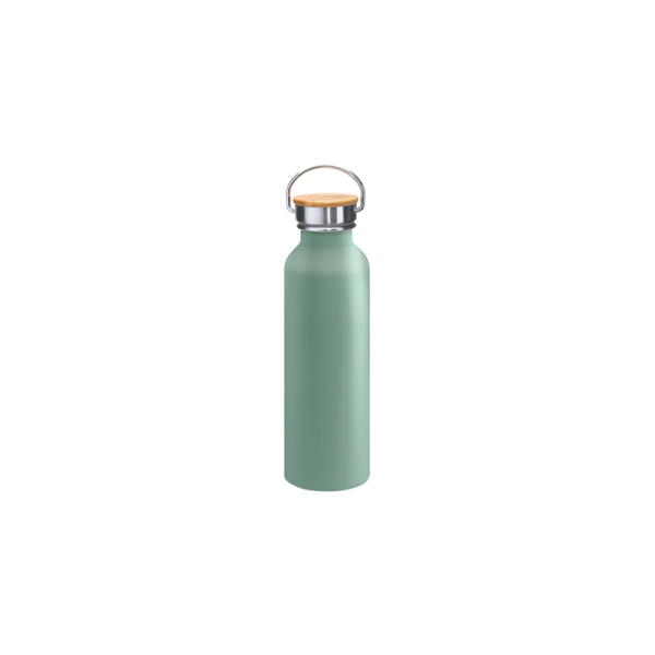 Borraccia Termica 500ml, in acciaio inox doppia parete, con interno in ceramica. Tappo in legno con infusore. Confezione con astuccio.