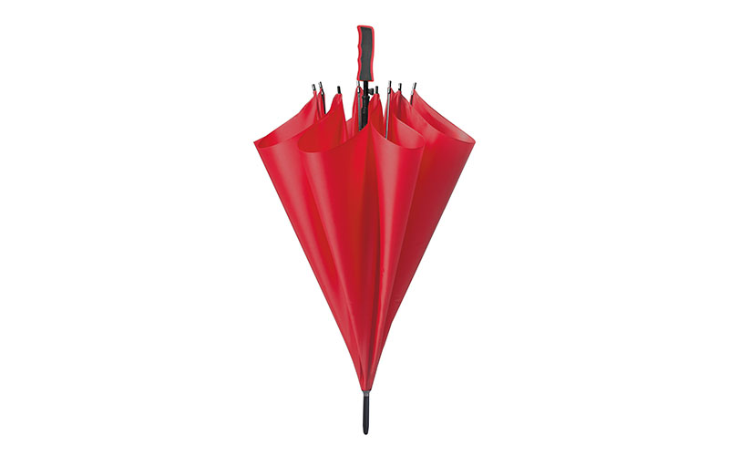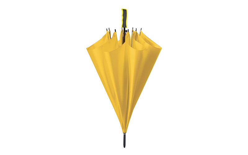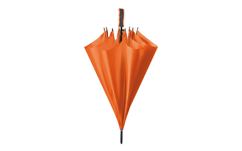 Maxi ombrello in nylon taffetà 170T, apertura automatica, fusto e puntale in metallo nero, manico bicolore in eva, struttura in fibra di vetro, chiusura con velcro