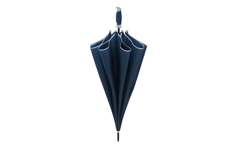 Maxi ombrello in nylon taffetà 170T, apertura automatica, fusto e puntale in metallo, manico traforato, profilo a contrasto, struttura in fibra di vetro, chiusura con velcro