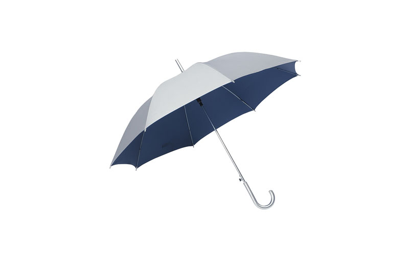 Ombrello in nylon taffetà 170T, apertura automatica, fusto e puntale in plastica silver, struttura in fibra di vetro, chiusura con velcro