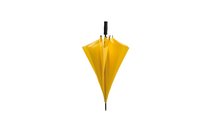 Ombrello in nylon taffetà 170T, apertura automatica, fusto e puntale in metallo nero, manico in eva, struttura in fibra di vetro, chiusura con velcro