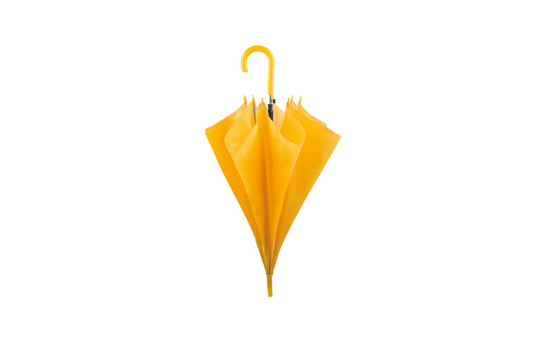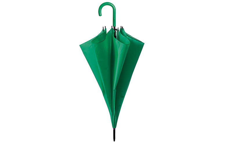 Ombrello in nylon taffetà 170T, apertura automatica, fusto e puntale in metallo nero, manico inplastica colorata, struttura in fibra di vetro, chiusura con velcro