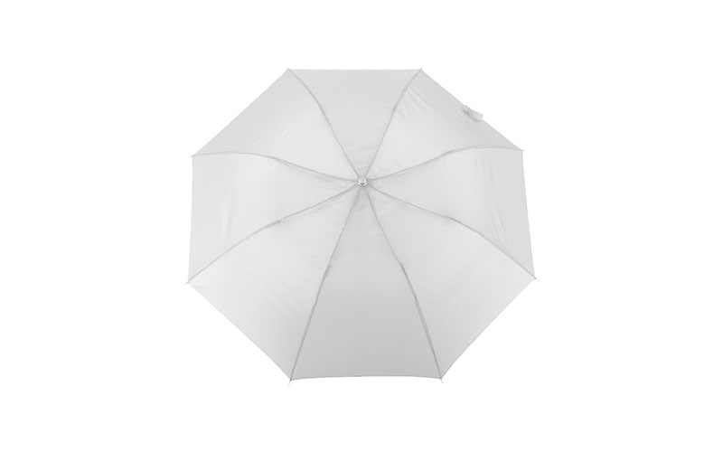 Mini ombrello in nylon taffetà 170T, apertura automatica, fusto in metallo, rib in metallo temperato e rinforzato, manico in plastica silver antigraffio, chiusura con velcro